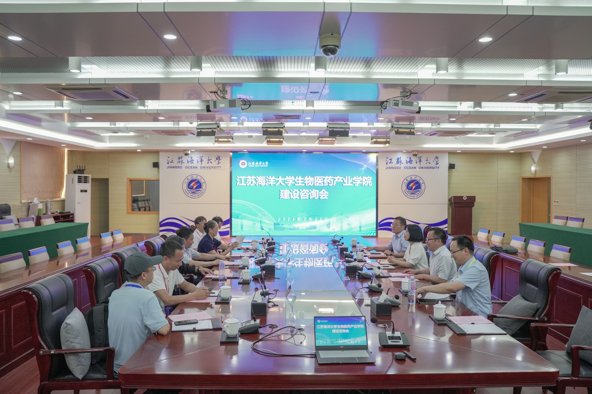 7月23日下午,生物医药产业学院组织召开建设咨询会。国务院学科评议组专家、江苏省药学会海洋药物专委会主任委员、南京大学谭仁祥教授,中国水产科学研究院黄海水产研究所金显仕研究员,中国科学院海洋研究所孙超岷研究员,浙江工业大学王鸿教授,上海交通大学李志勇教授出席咨询会。江苏恒瑞医药股份有限公司化学制造事业部运营中心总经理朱汉帅、教务处处长安俊丽、药学院班子成员及教师代表参加了会议。